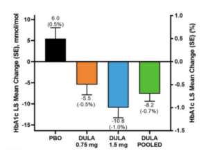 De 154 jongeren zijn gerandomiseerd naar placebo (n = 51), DU 0,75 mg (n = 51) of DU 1,5 mg (n = 52). DU bleek superieur aan placebo in het verbeteren van de glykemische controle.