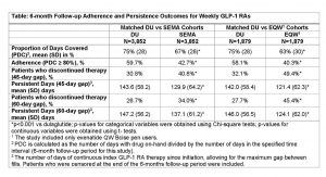 Mody R, et al. Dulaglutide has higher adherence and persistence than semaglutide and exenatide QW: 6-month follow-up from U.S. real-world data. 80th ADA Virtual Scientific Sessions, 2020. https://plan.core-apps.com/tristar_ada20/abstract/986531bc-86ae-4264-991e-9c8abb2d93cb.