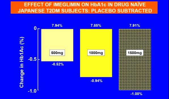 Het nieuwe medicijn verhoogt de insulinesecretie op een glucoseafhankelijke manier, verlaagt gelijktijdig het teveel aan glucoseafscheiding uit de lever en maakt de spieren insulinegevoeliger. In eerdere fasen is het effect van imeglimine onderzocht bij 1200 patiënten met diabetes type 2. Uit dit onderzoek bleek het middel veilig en goed te verdragen is. Zowel als monotherapie als in combinatie met sitagliptine en metformine daalde het HbA1c-gehalte statistisch significant (dosisafhankelijk).