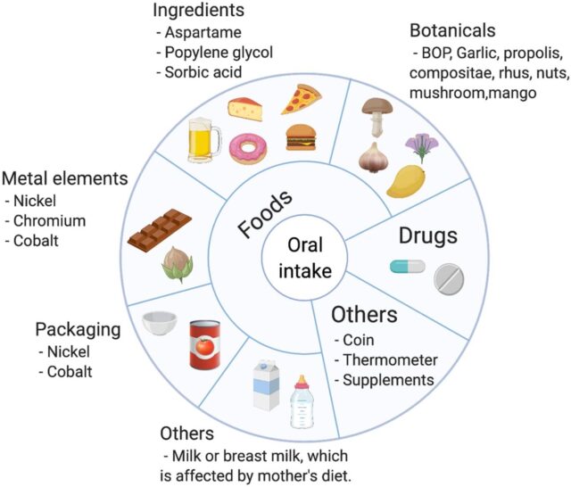 Figuur. De orale intake kan een ruime schakering aan allergenen bevatten.