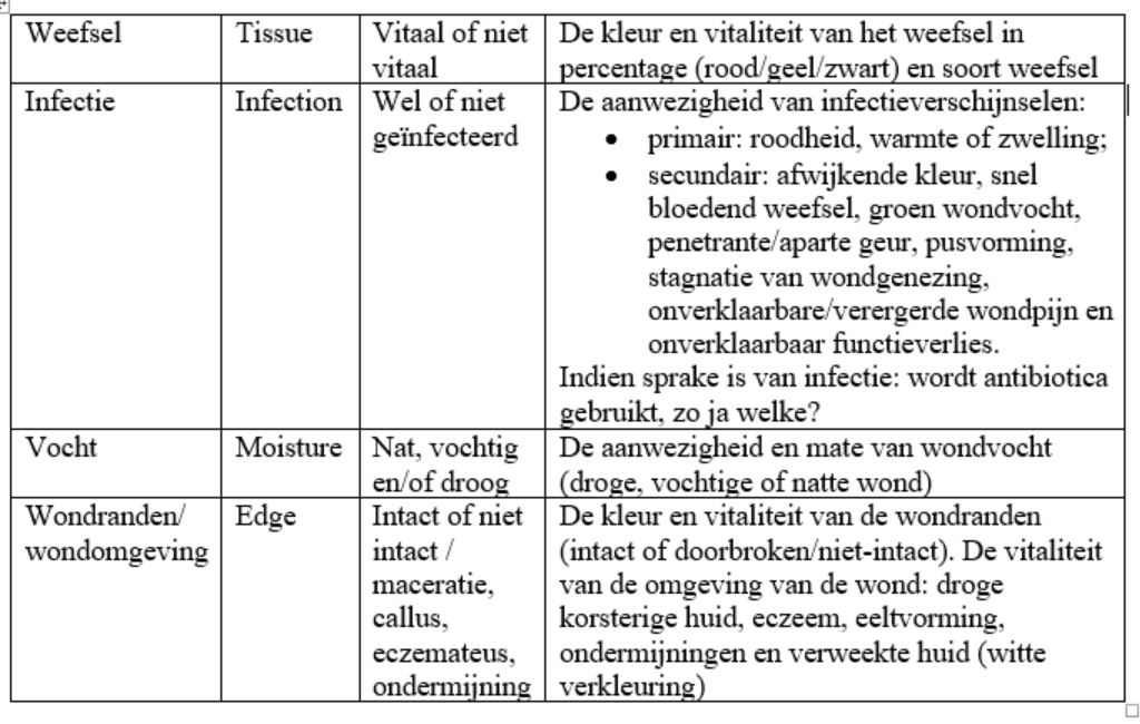 Het TIME-model is een gedetailleerder model dat vooral bij complexe wonden wordt toegepast. Dit model beschrijft de wond op basis van vier lokale kenmerken: weefsel, infectie, vochtigheid en wondranden (tabel 1).